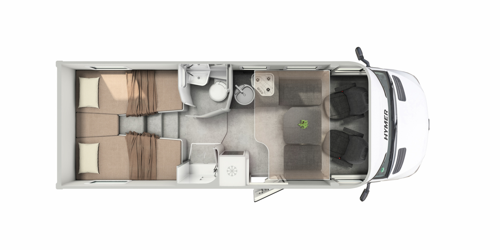 Hymerin PUAL -Sandwich korirakenne on markkinoiden huolettomin ratkaisu. Alumiini-uretaani-alumiini rakenne on täysin kosteusvapaa eikä kylmäsiltoja juurikaan ole.