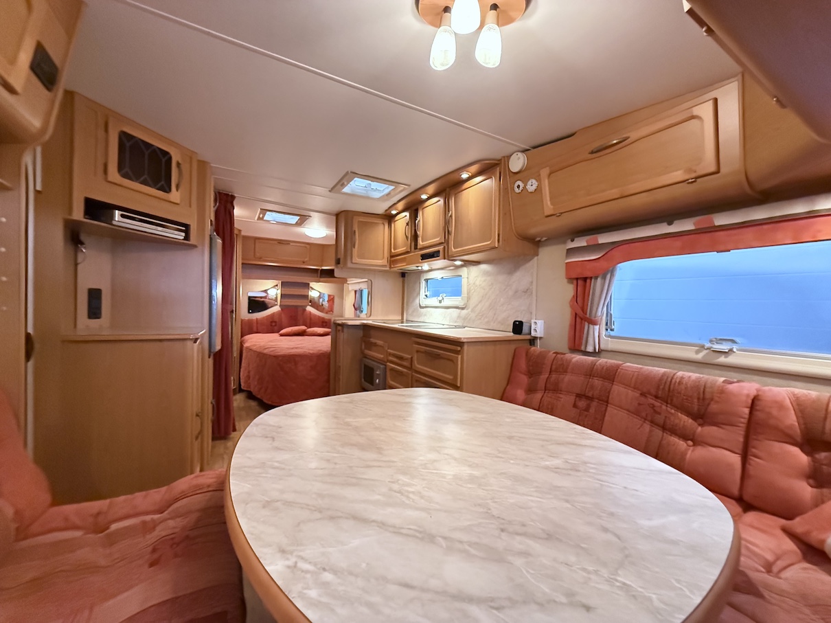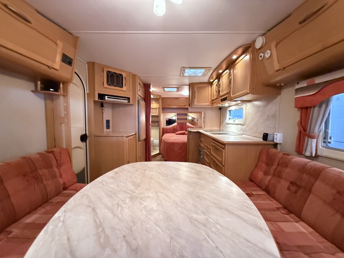 Alde -nestekeskuslämmitys, nestekiertoinen lattialämmitys, vesijärjestelmät sisällä lämpimässä, EcoPrim Foam -eristys, alumiinivanteet, kitkavetopää, liesituuletin, TV-antenni, suksiboksi, mikrouuni.