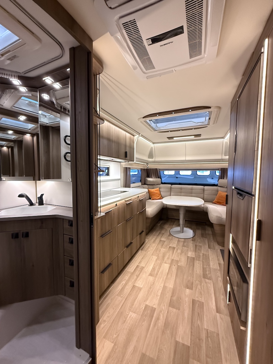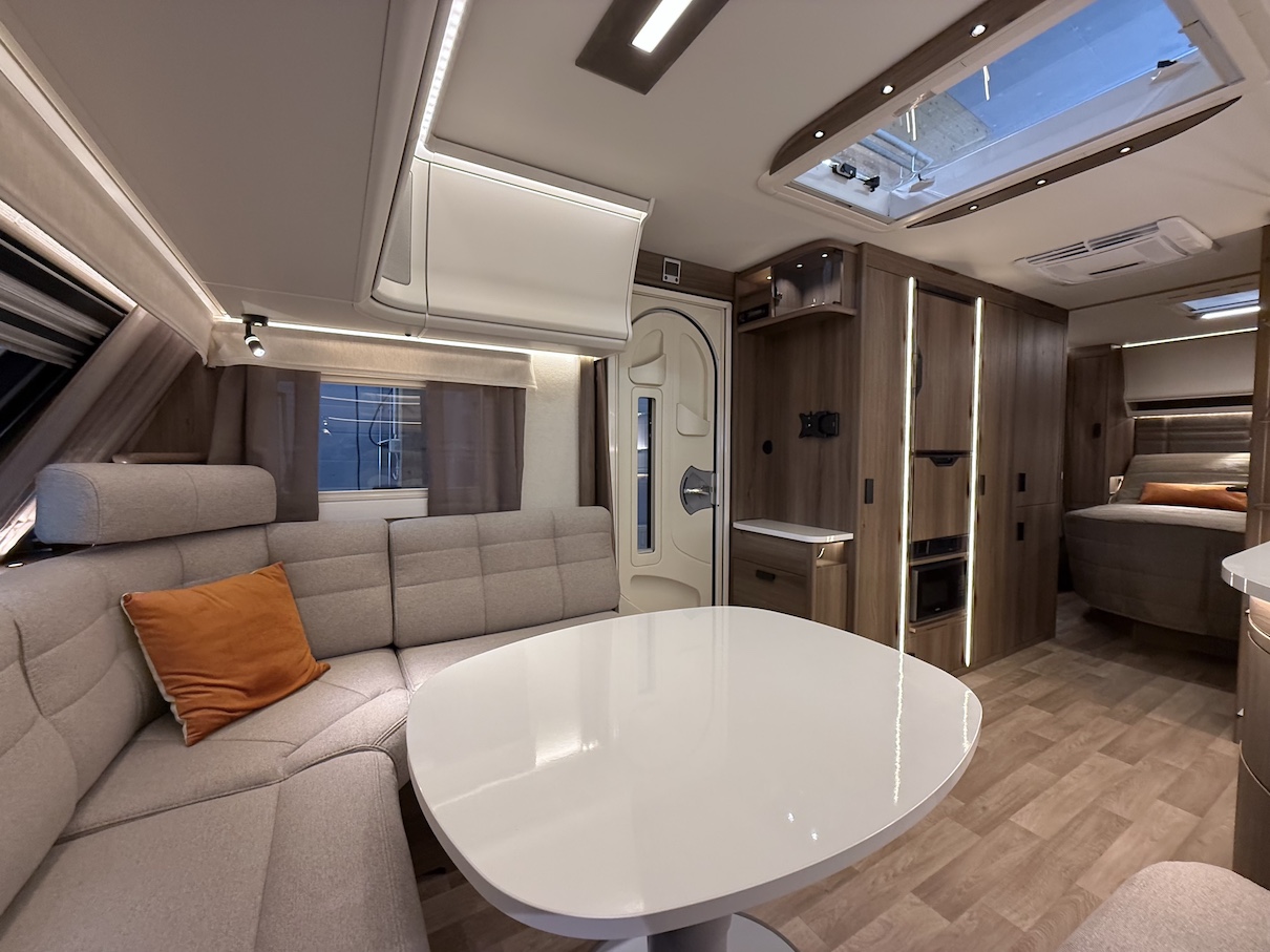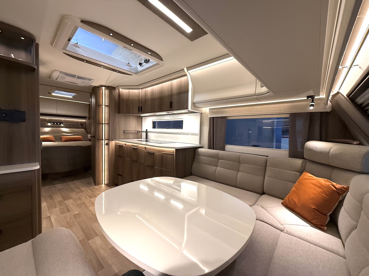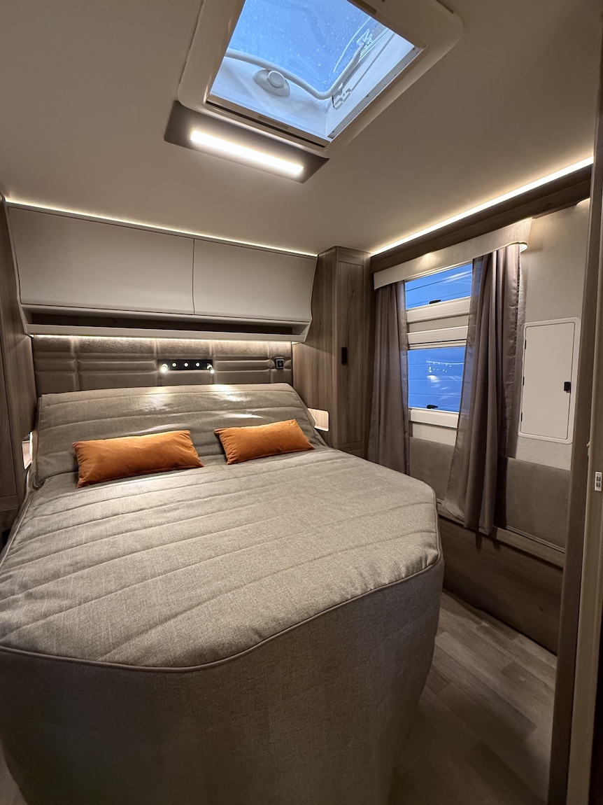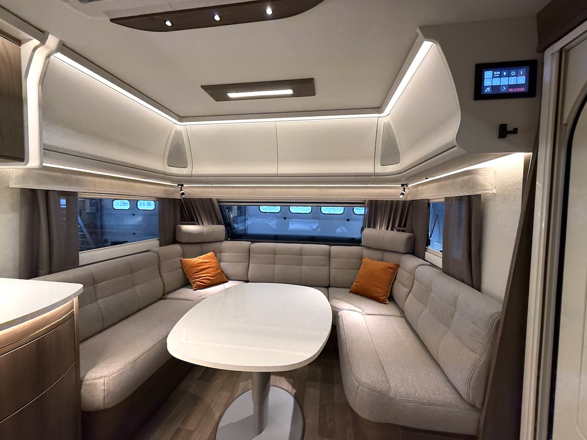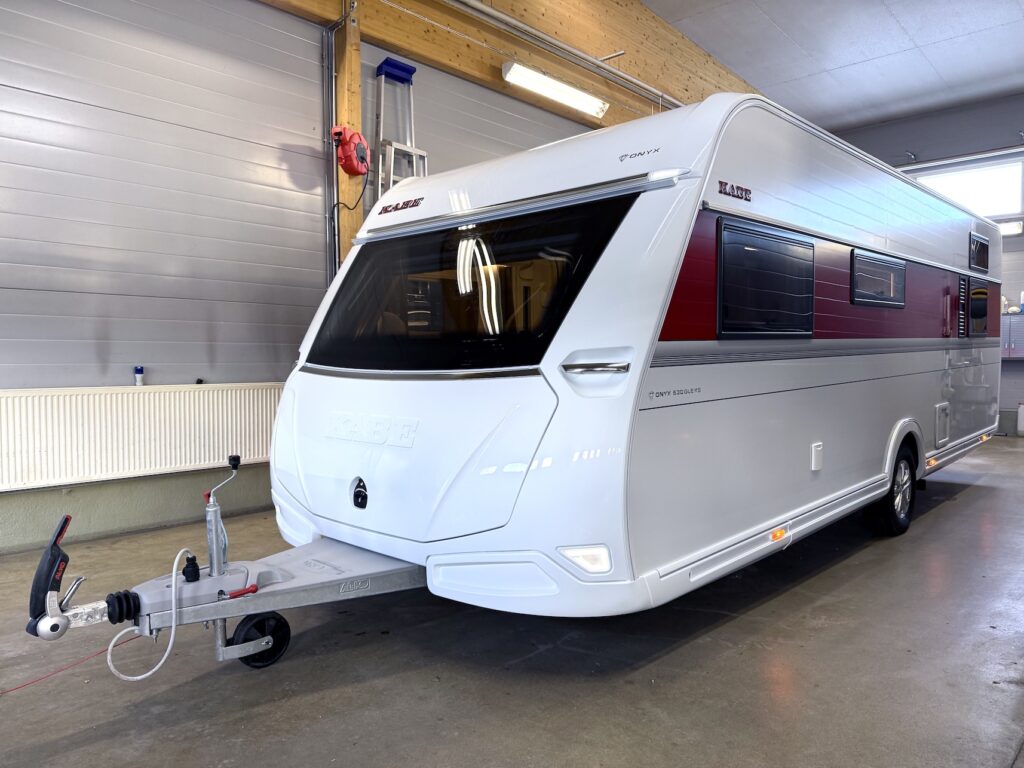 Todella tilava, takuulla talvilämmin Kabe Onyx -matkailuvaunu sähkösäätöisellä Queens Bed -saarekevuoteella!