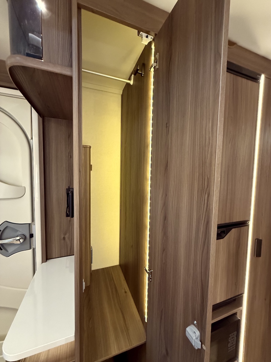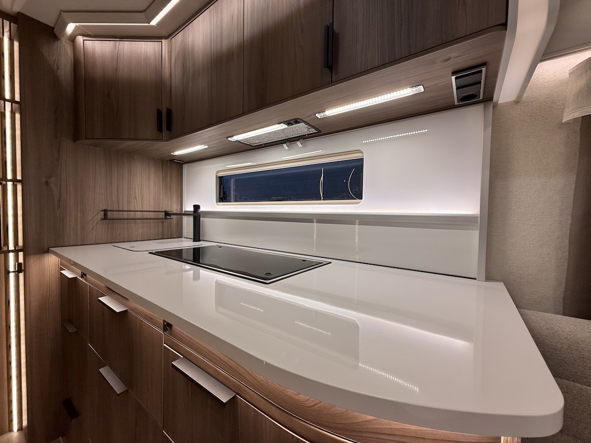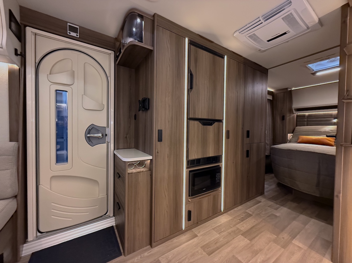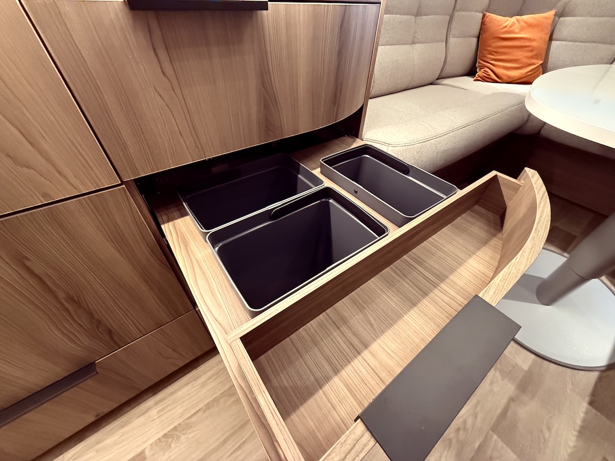 Onyx -kokoluokka tarjoaa paljon kaappitilaa ja lepoasentoon kääntyvä saarekevuode mahdollistaa sujuvan kulkemisen makuuhuoneeseen päiväsaikana.