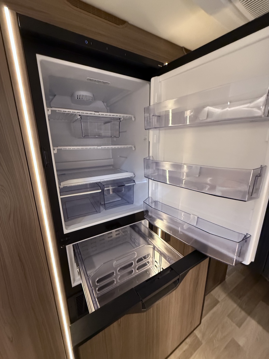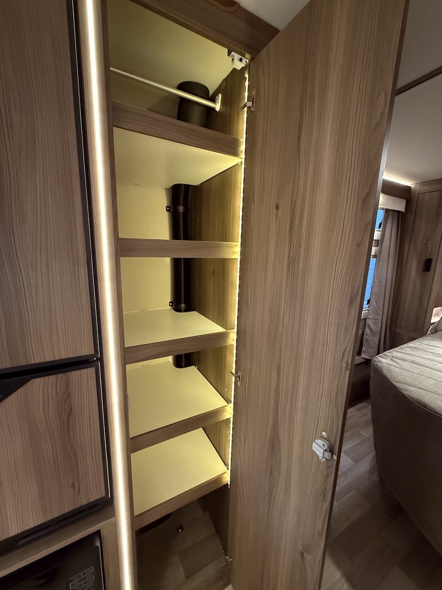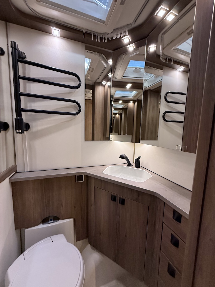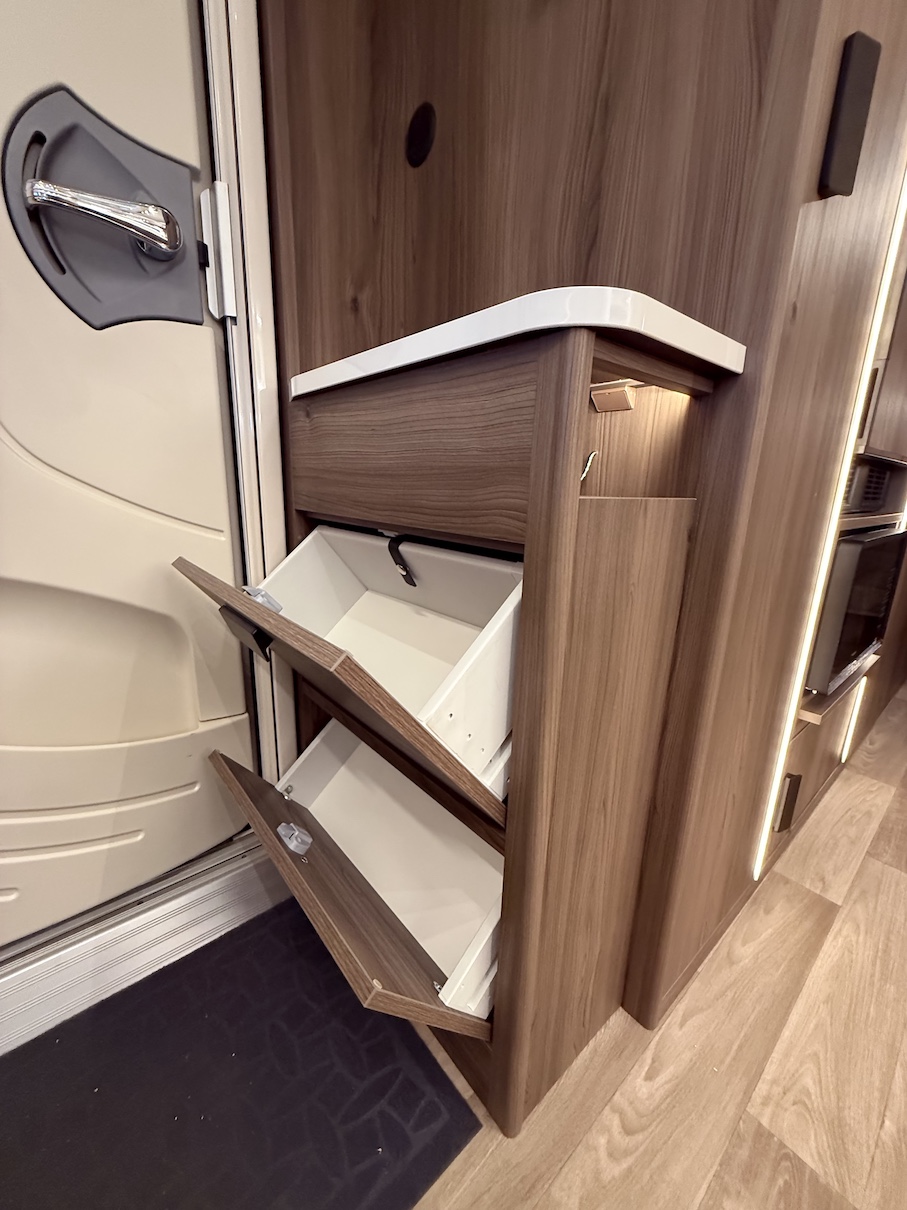 Onyx -kokoluokka tarjoaa paljon kaappitilaa ja lepoasentoon kääntyvä saarekevuode mahdollistaa sujuvan kulkemisen makuuhuoneeseen päiväsaikana.